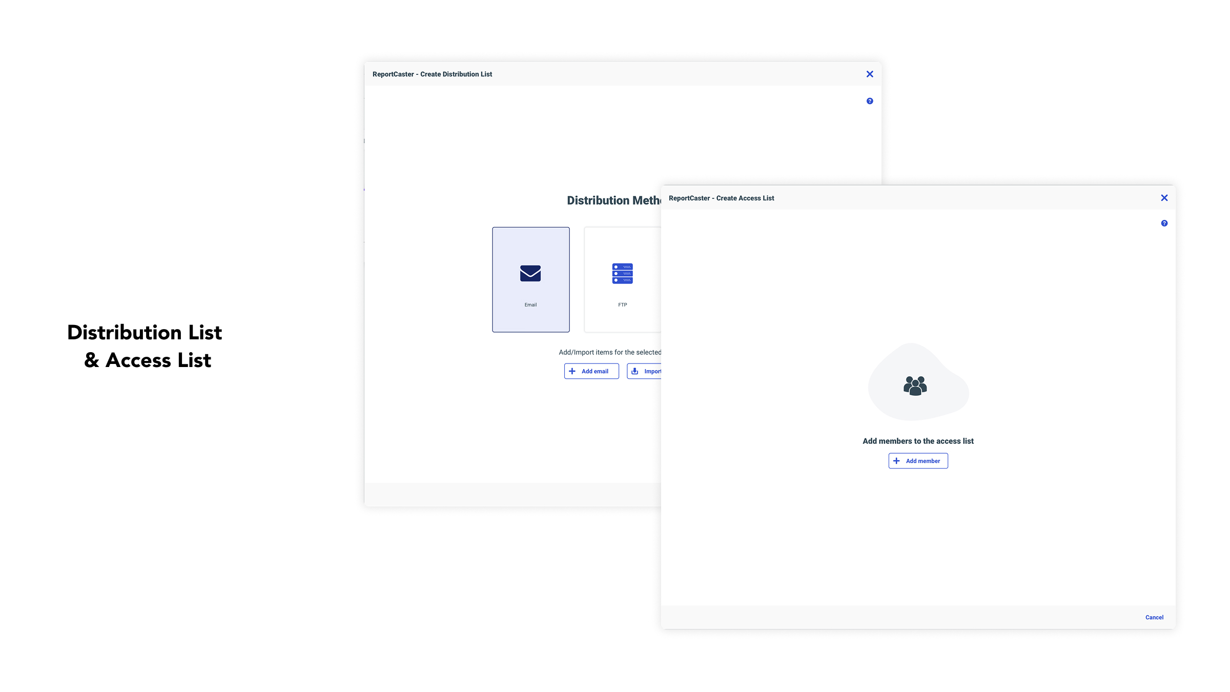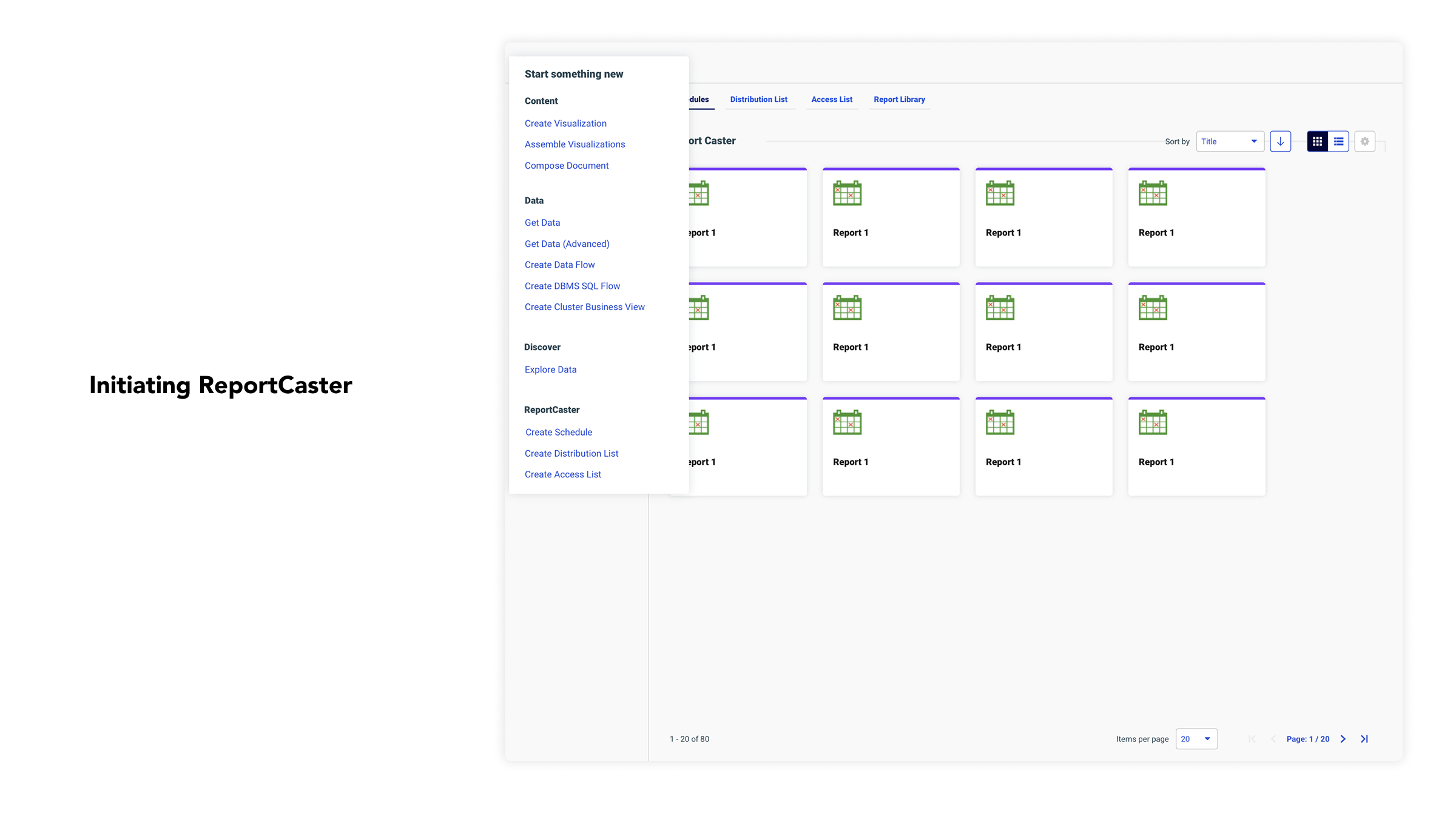 A closer look at the core ReportCaster screens and flows — from legacy entry points to the new in-hub experience.